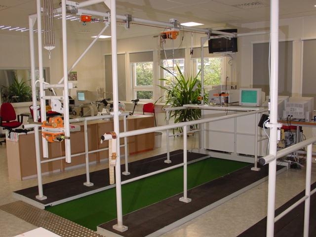 | Sicherheitseinrichtungen: | Longensicherung des Sportlers mit Not-Halt-Auslösung bei Sturz, Not-Stopp im Umlauf und am Bediencomputer |