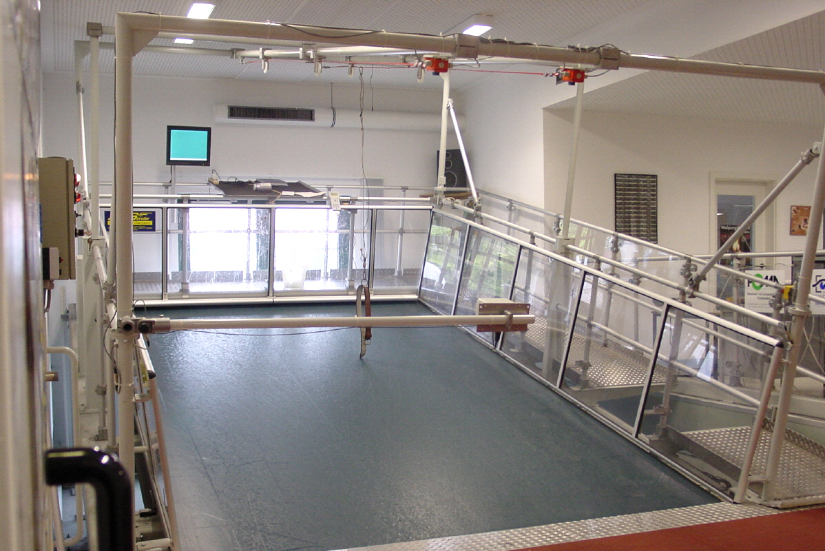 Das große Laufband mit einer Lauffläche von 3000 x 4500 mm kann Anstiege und Gefälle simulieren, so dass es möglich ist, jedes Streckenprofil von Originalschau- plätzen nachzustellen.- Das Laufband eignet sich u.a. für Lauf-, Skilanglauf-, Radsport- und Rodelanschubtraining.